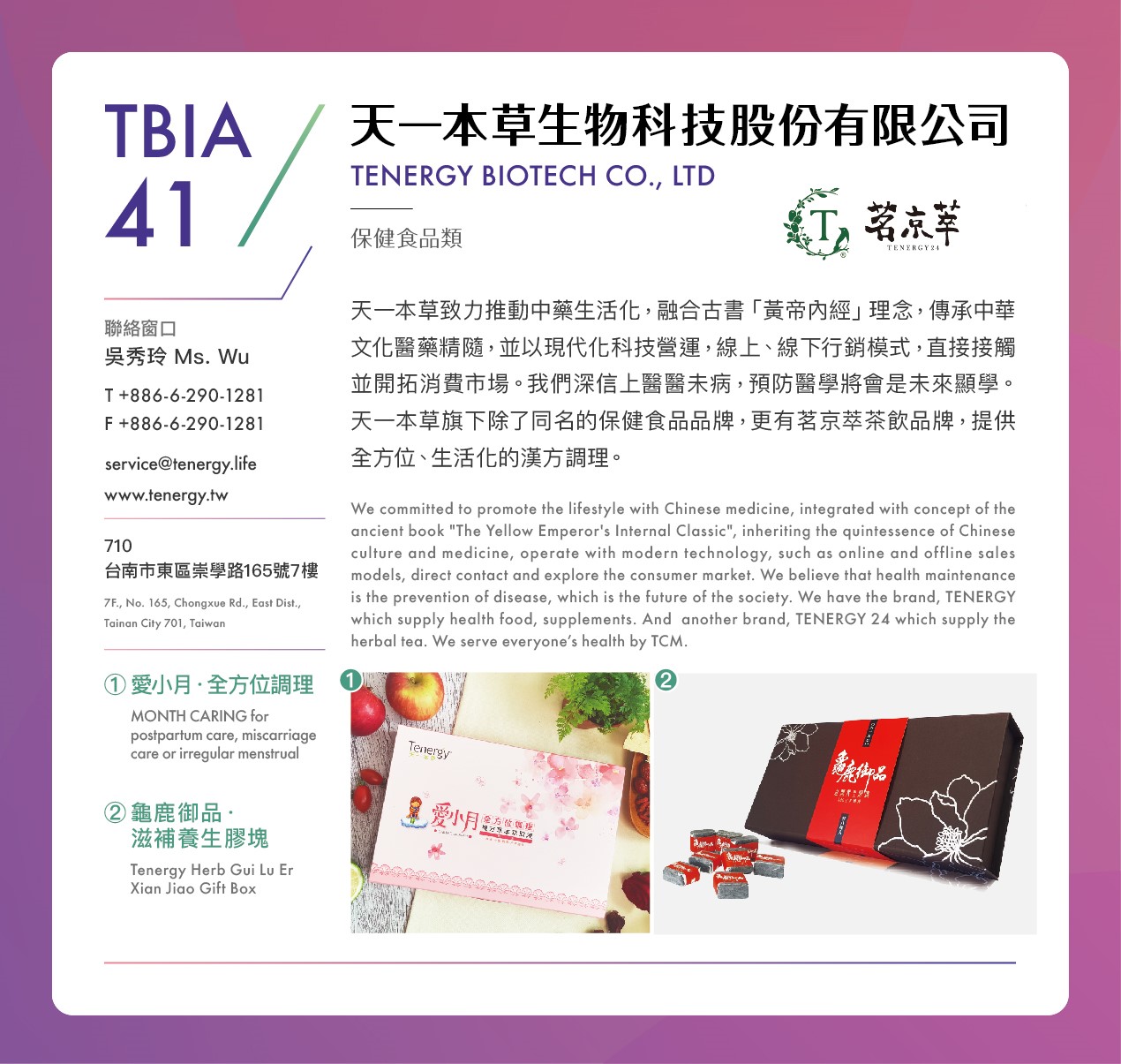 - 聯絡窗口: 天一本草生物科技股份有限公司