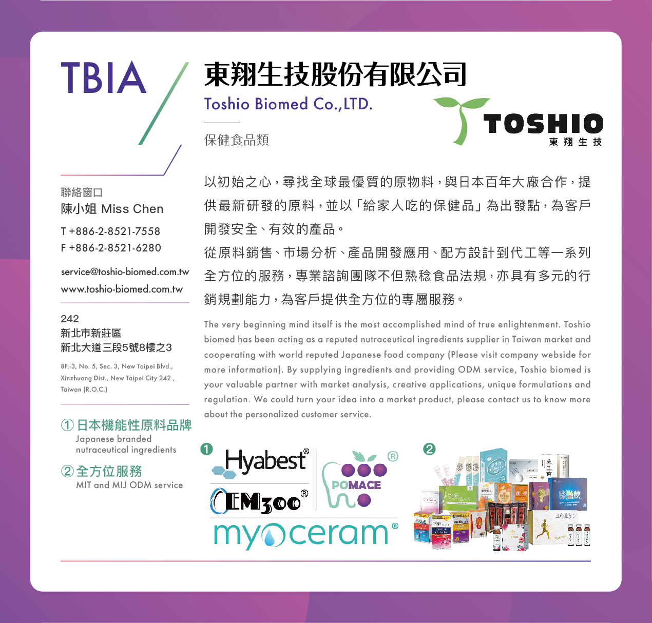 - 電子信箱: service@toshio-biomed.com.tw