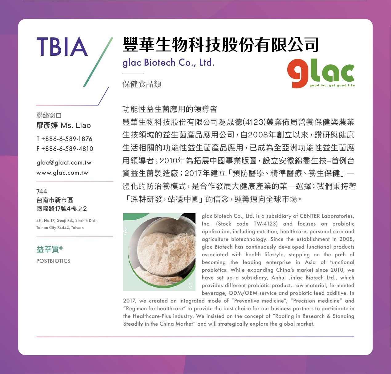 豐華生物科技股份有限公司為台灣晟德(4123)轉投資之新事業體,自2008年創立以來,以功能性益生菌為主軸,開發營養保健、食品、消/妝/械字號與農業生技領域的益生菌應用產品,成為大中華區功能性益生菌應用領導者。