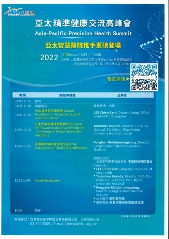 1110722 財團法人工業技術研究院 本院訂於111年07月28日舉辦「亞太精準健康交流高峰會」