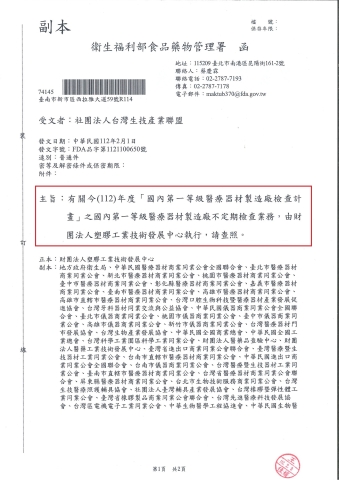 【衛生福利部食品藥物管理署】1120201 FDA品字第112100650號