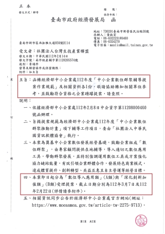 【臺南市政府經濟發展局】南市經產輔字第1120205574號