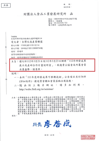 【財團法人食品工業發展研究所】食技研字第1120000744號