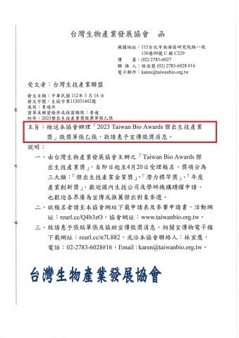【財團法人台灣生物產業發展協會 】『2026傑出生技產業獎』,自即日起至3月20日止受理報名