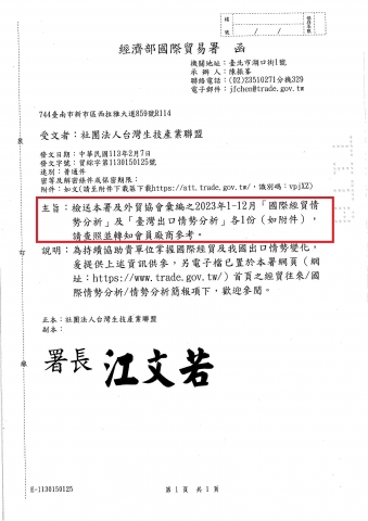 【經濟部國際貿易署】貿綜字第1130150125號