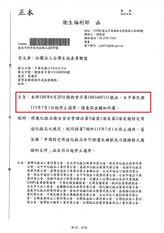 本部108年6月20日衛授食字第1081605131號函,自中華民國113年7月1日起停止適用,請查照並轉知所屬。
