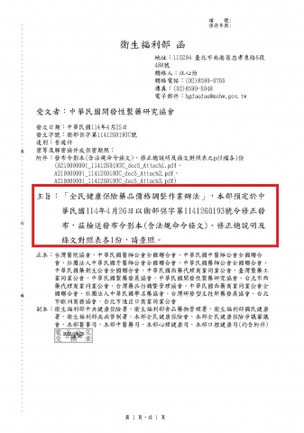 【中華民國開發性製藥研究協會】衛部保字第1141260193C號_「全民健康保險藥品價格調整作業辦法」