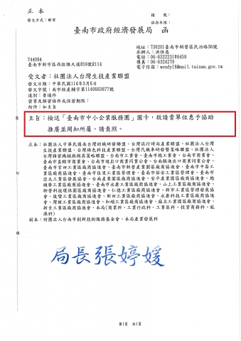 【臺南市政府經濟發展局】 南市經產輔字第1140663677號_臺南市中小企業服務團