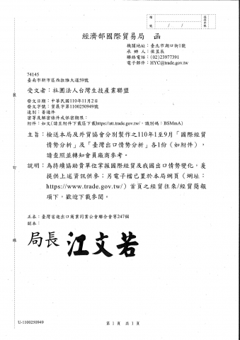 【經濟部國際貿易局】檢送本局及外貿協會分別製作110年1月至9月「國際經貿情勢分析」及「台灣出口情勢分析」各一份